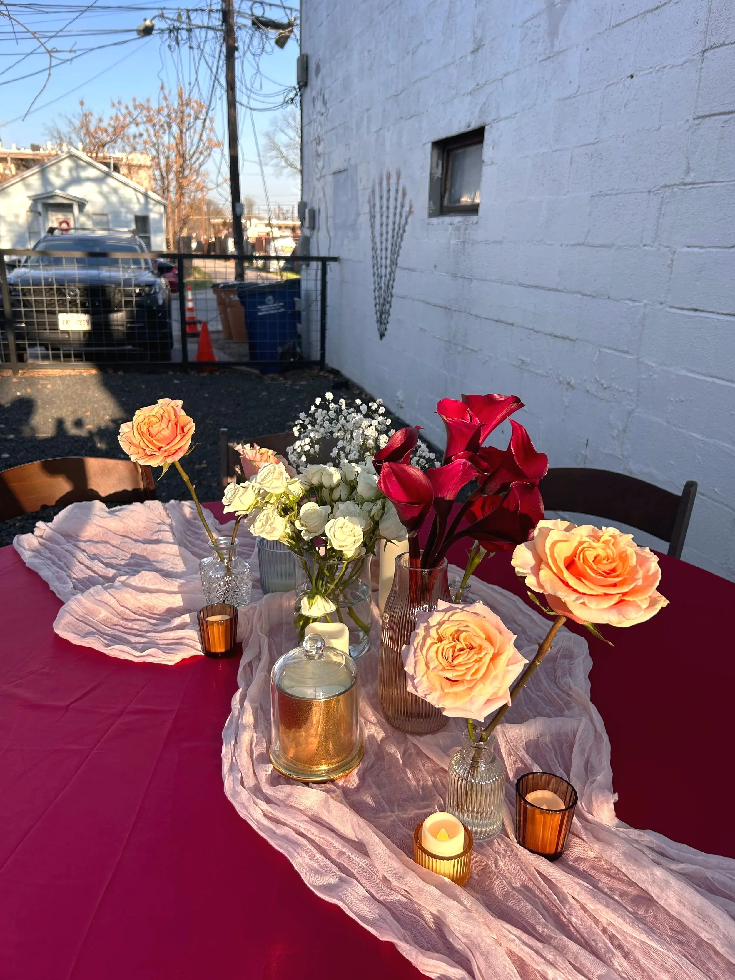 A hands-on floral experience where guests create their own bouquet to take home. The Bouquet Bar includes a curated selection of seasonal blooms, greenery, and wrapping materials styled beautifully for display. Guests can select stems and design a small bouquet while enjoying the celebration. Choose a color palette and we’ll pick out the prettiest in-season blooms to match your event.